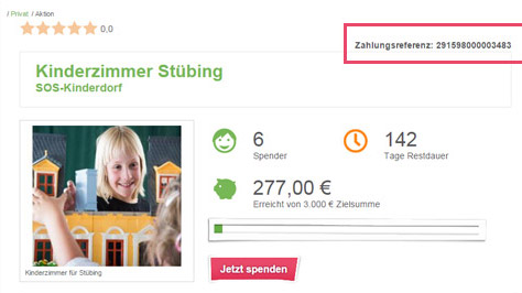 - Spenden Sie für Ihre eigene Aktion! Um mit gutem Beispiel voranzugehen und den Ball ins Rollen zu bringen, machen Sie am besten den Anfang und spenden Sie als erstes.